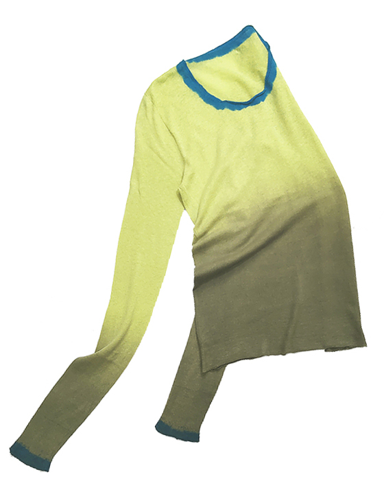 challenge(絞染め綿麻ラグランスリーブのホールガーメントニット)