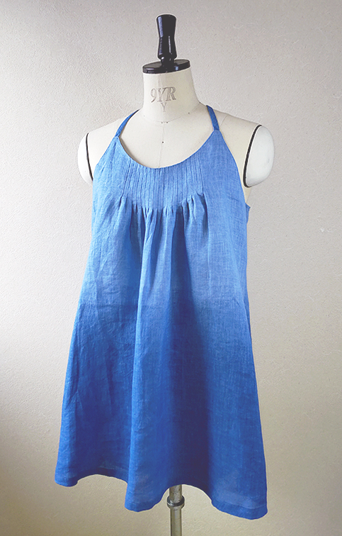 Backがキュートなギャザーチュニック(藍グラデーションのキャミワンピ)