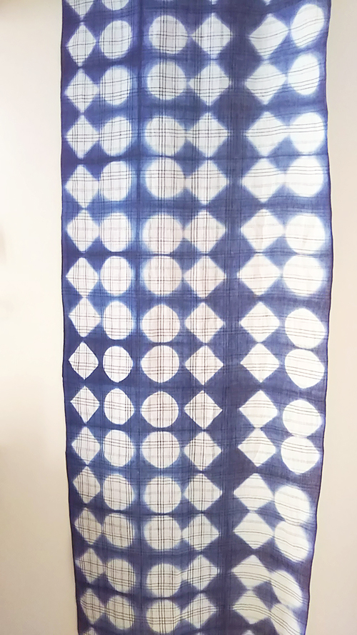 格子のような縫い絞り(藍染め袖丈長めの綿麻ニット)