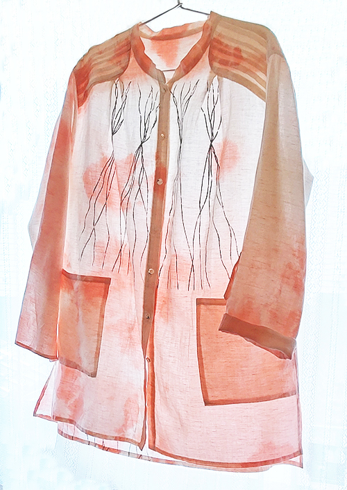 「混沌とやさしさ」~ラミーリネン100% 板締めとピンクカラーのグラデーション染色デザイン