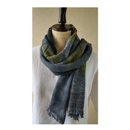 蛍しぼり(藍の手染めドルマンスリーブ綿麻ニット)