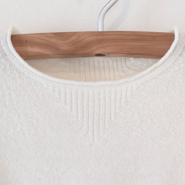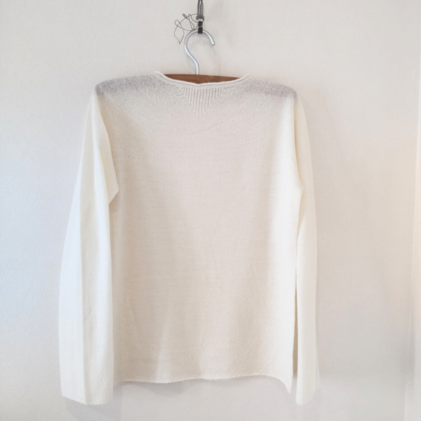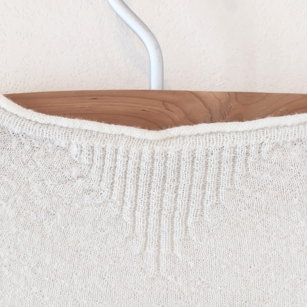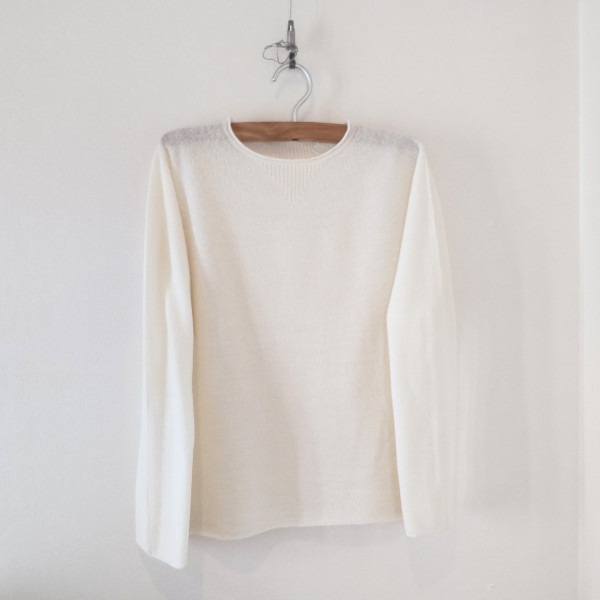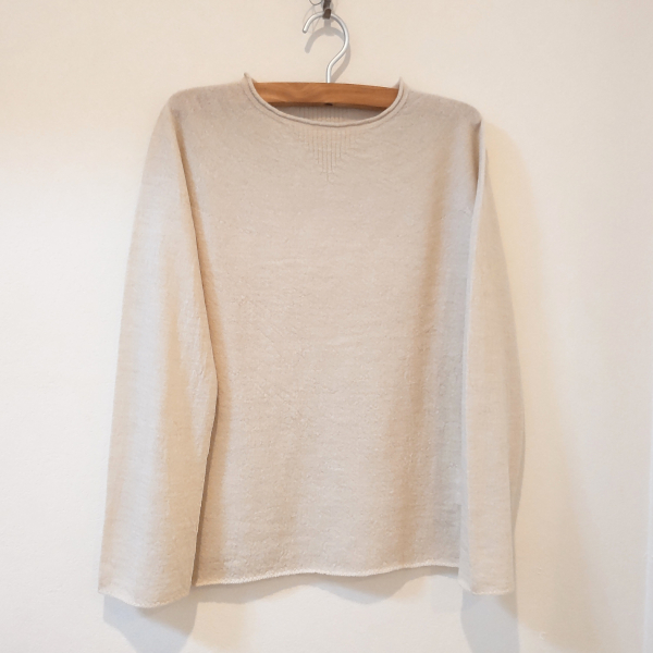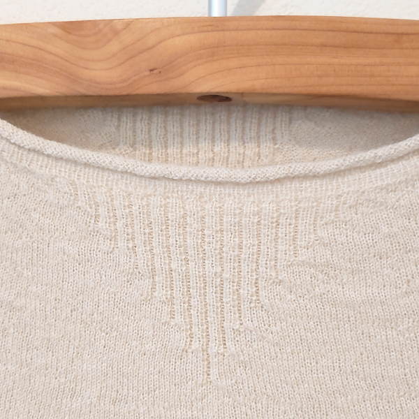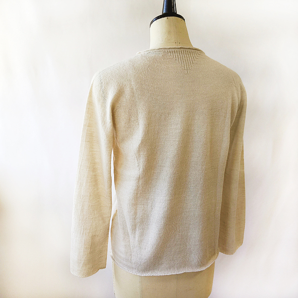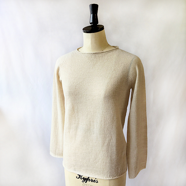 ウール100%の糸から選んで造ったニットは、細い糸を2本撚り合わせて編んでいるのでソフトで軽い仕上がりになっています