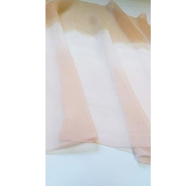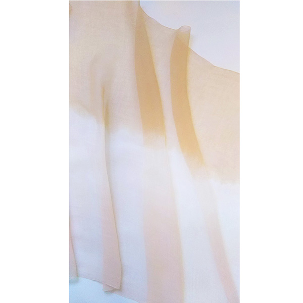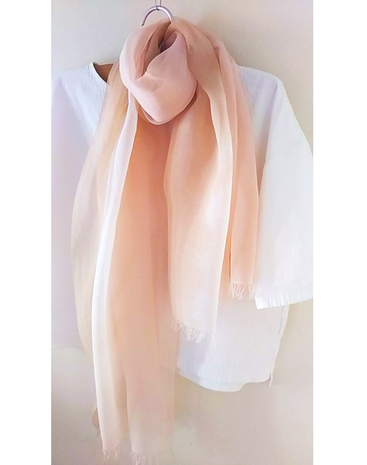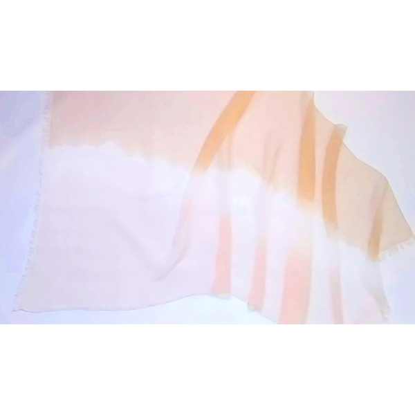 質の良いシルクとコットン素材で織った、軽くて透け感のある繊細なガーゼ生地に、淡いグラデーションカラーを4~5回重ねて染めたストールです