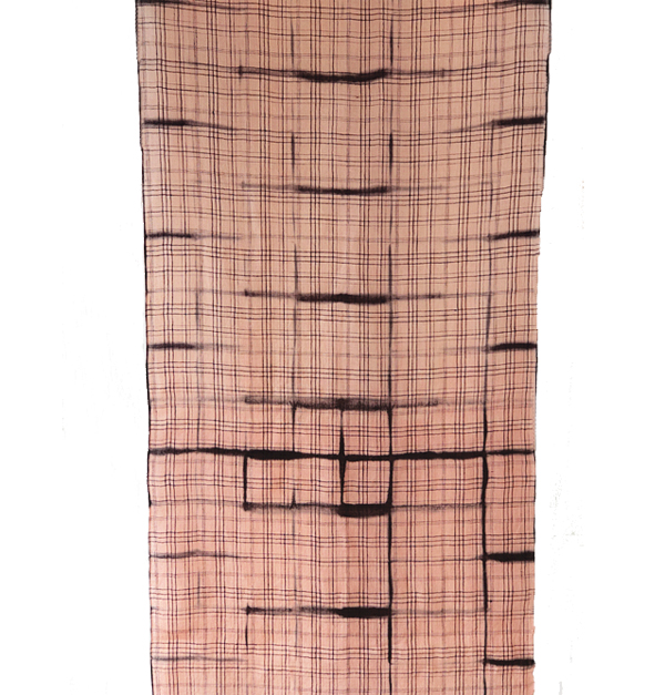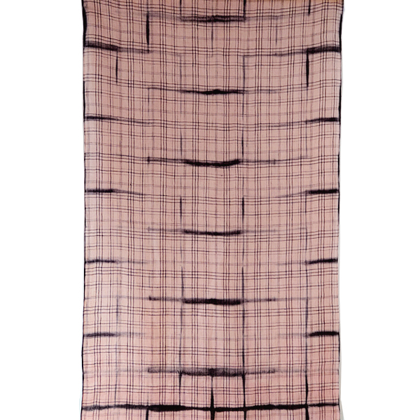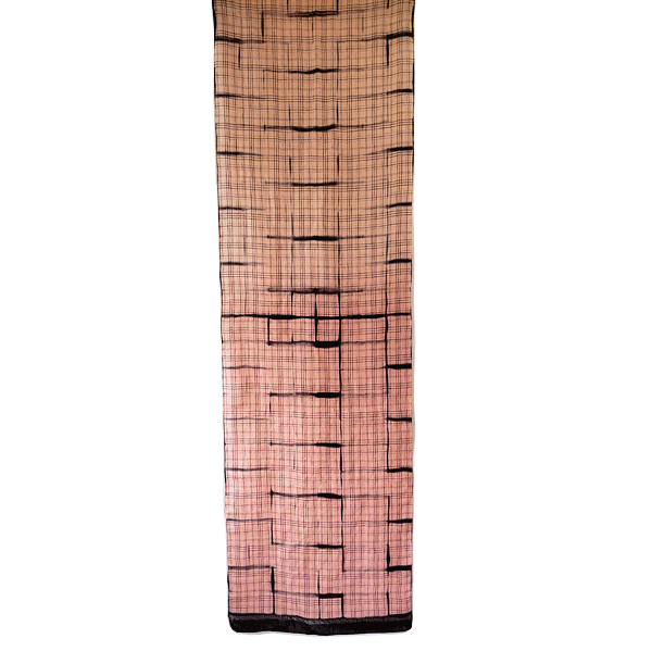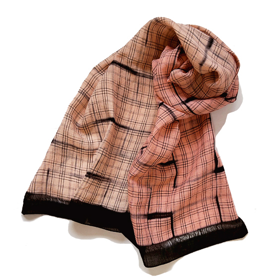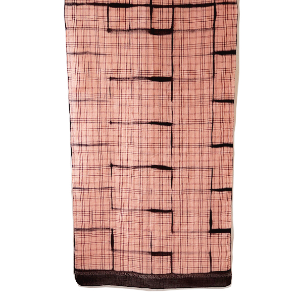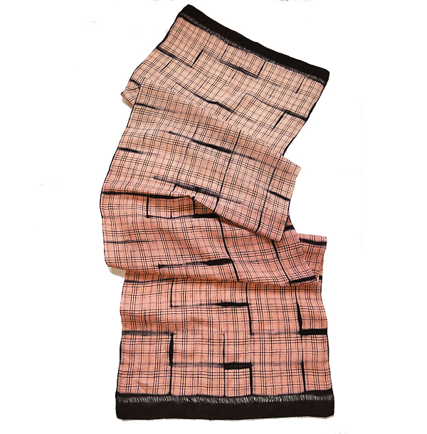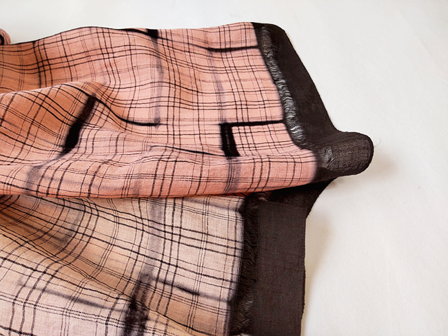 麻の中でも質の良いラミー糸を使い細い線を組み合わせてデザインした生地(格子柄)に、グラデーションと黒の手染めを施しています